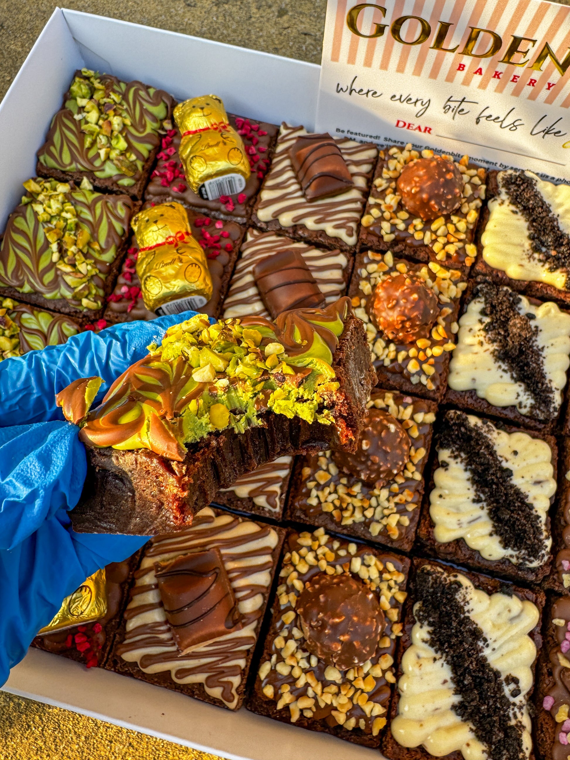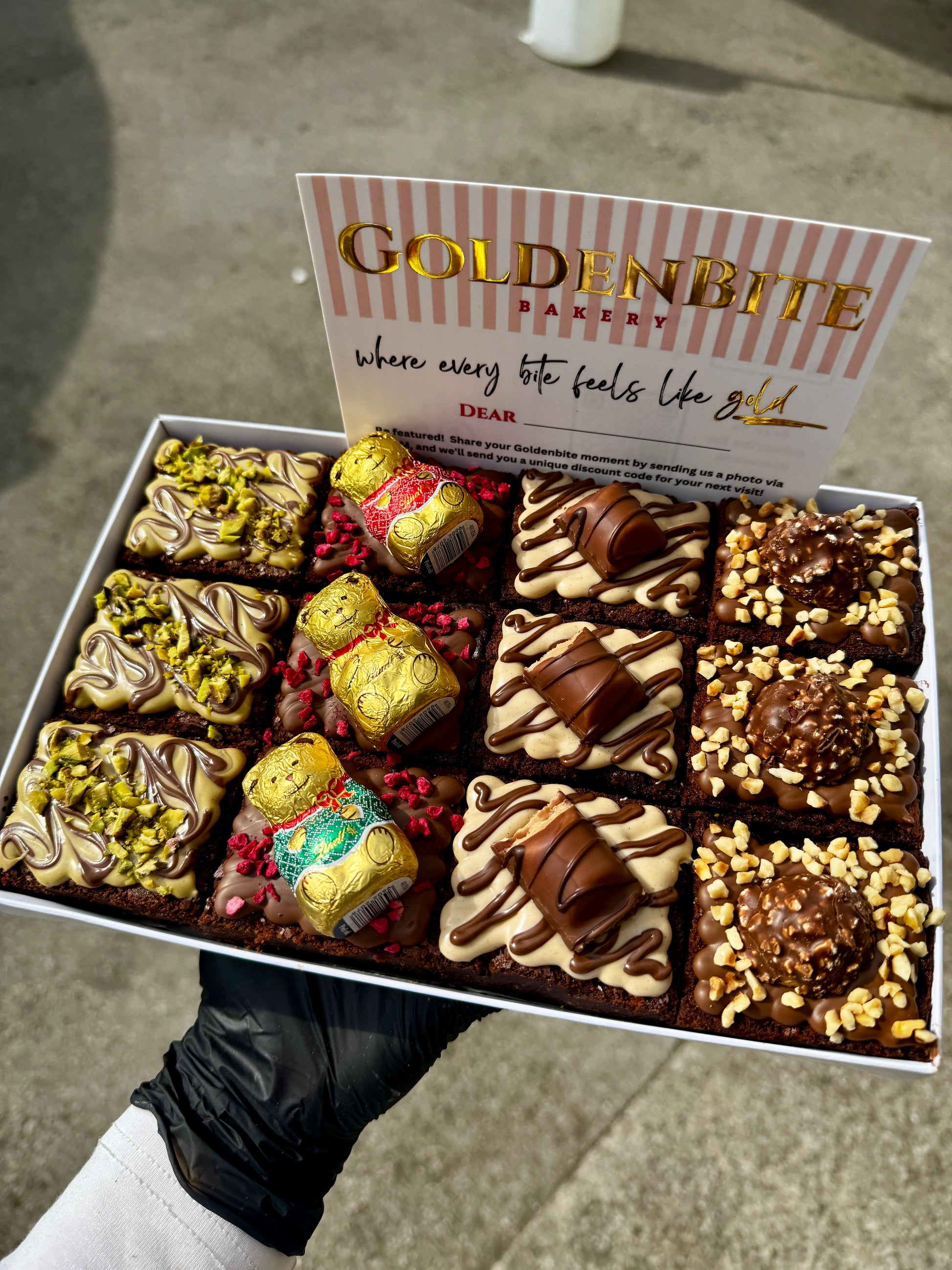 Each brownie treat features a gooey chocolate centre, a hardened milk chocolate layer, and white chocolate personalisations. Add a touch of flair with your choice of colourful sprinkles to make every bite uniquely yours.